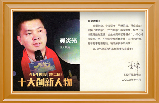 1、NG娛樂總經(jīng)理吳炎光榮獲環(huán)境商學(xué)院2020屆“十大創(chuàng)新人物”,傾心打造奇點(diǎn)NG娛樂“空氣懸浮風(fēng)機(jī)”和“磁懸浮風(fēng)機(jī)”;